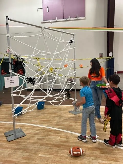 Thanks to the creativity and inspiration of Amber Thomas, and with the support of The Friends of Taos Charter School, the Student Council, and lots of helpful parents, we had jumping spiders, web toss, pumpkin tic-tac-toe, Halloween candy prizes, temporary tattoos, beautiful henna tattoos done by Mia Stallard of Taos Henna (505-573-7052). Dad Tige Bailey cooked up delicious all-beef hot dogs, the Storyteller Movie theater donated popcorn for everyone who then watched the movie all our classes voted on, “Nightmare Before Christmas”. About 150 kids and parents turned out for this fun time!